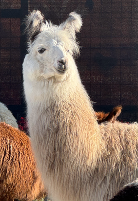 Couscous ist einzigartig im Charakter und stiehlt den Alpakas die Show.