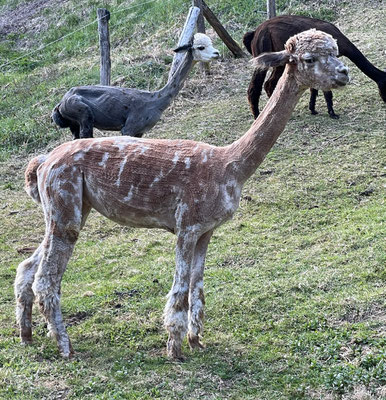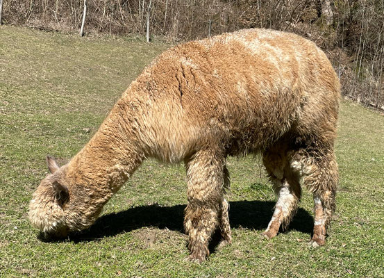 Mit ihrem Vater Softfood Mudgee bringt sie neue Genetik in die Schweiz. Leider hat sie ihr Cria, welches sie im Bauch von Neuseeland in die Schweiz mitgebracht hat bei der Geburt verloren.