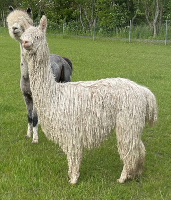 Suri-Züchter ist dieses Alpaka ein Begriff. Sie hat etliche Champion-, Grand Champion- und Best of Show Titel. Molly Gardner selbst sagte zu ihr, dass es ein Weltklasse-Alpaka sei.
