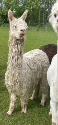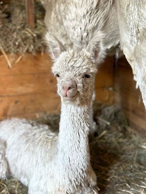 2025 hat sie noch bei Sunny Island Alpacas ihr erstes Cria erhalten und es ist zum verlieben.